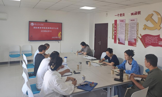 9月23日我院党委理论学习中心组(扩大)开展政治理论学习活动,党委班子成员、全体教工党员参加学习。会议由党委书记汪斌同志主持。
