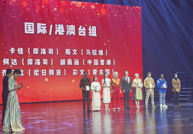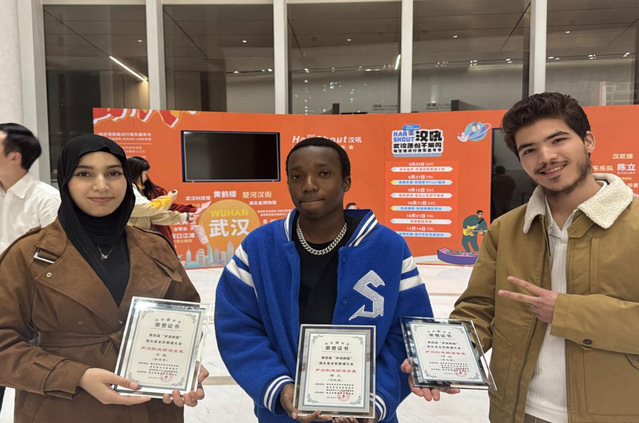 11月16日,由湖北省文学艺术界联合会、湖北省文化和旅游厅、湖北省关心下一代工作委员会联合指导,湖北省朗诵艺术家协会主办的第四届“声润荆楚”湖北省全民朗诵大会荣耀盛典暨名家朗诵音乐会在武汉临空港大剧院举行。我院四名国际学生MWANSAMBO STEVEN DON(中文名:斯文,马拉维籍)、ED-DAHBI IBRAHIM (中文名:何达,摩洛哥籍)、TOUIL KHADIJA(中文名:卡佳,摩洛哥籍)、GARY TAN JIN HIN(中文名:陈政熙,马来西亚籍)荣获国际组“金星奖”,熊俊、张玥两位老师荣获“伯乐奖”。